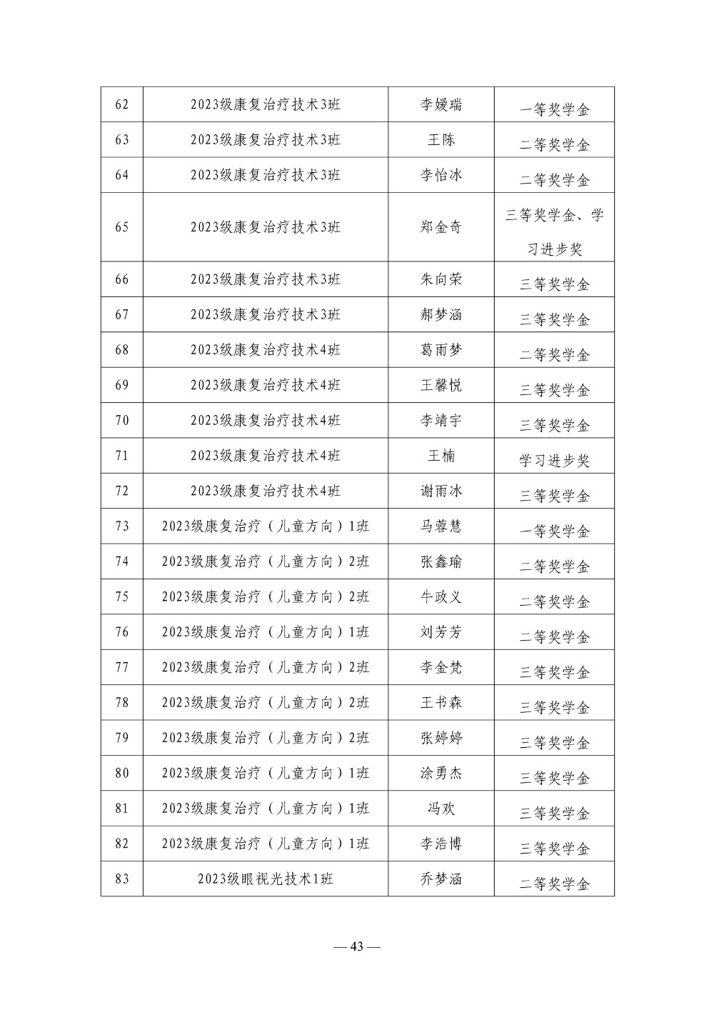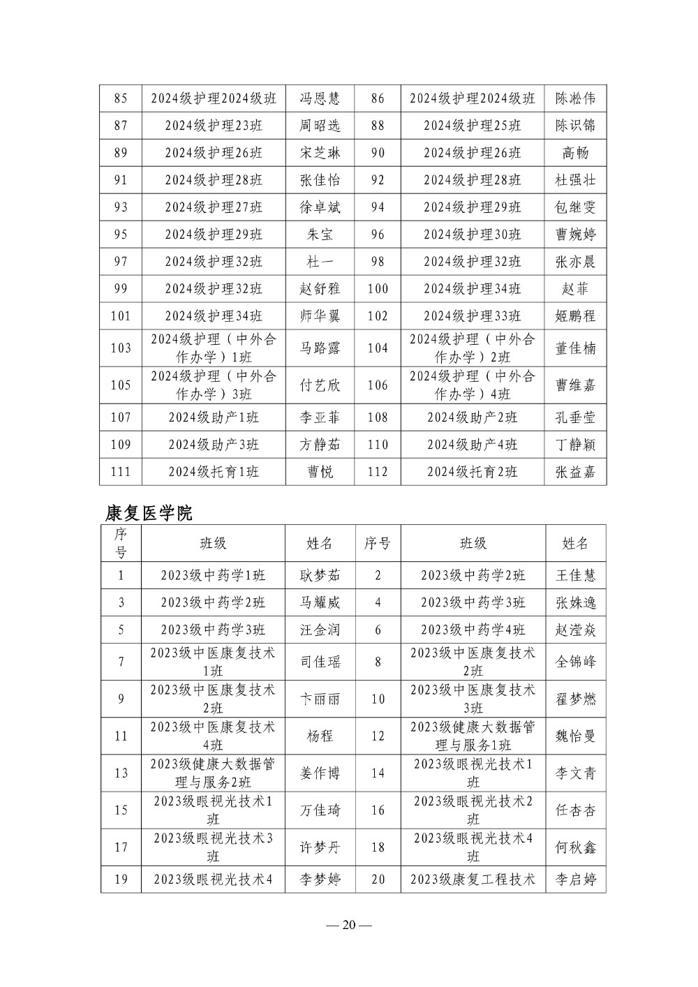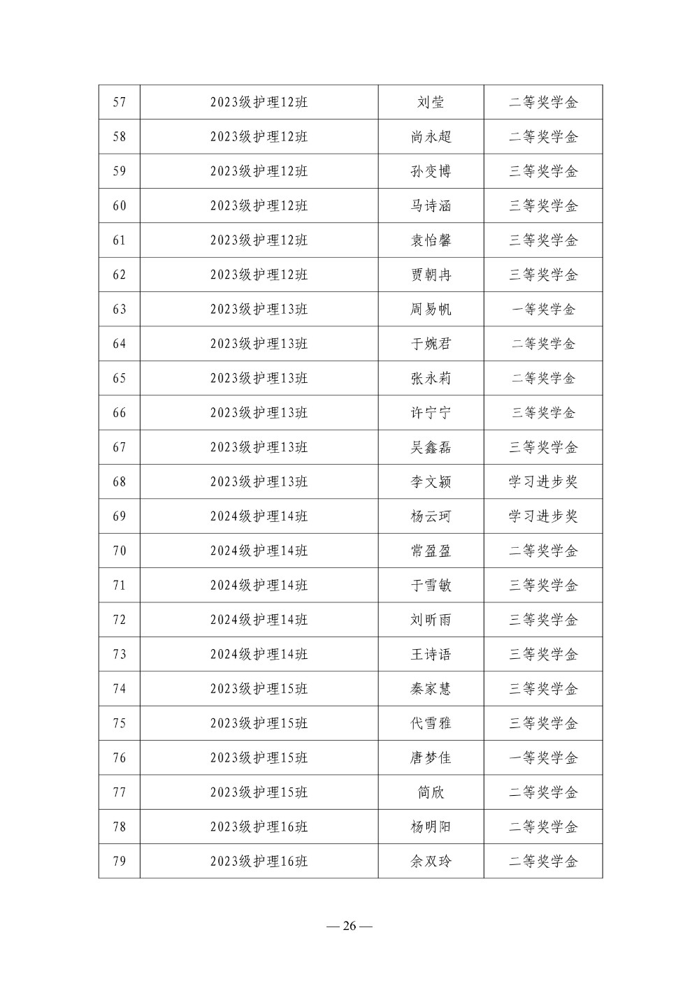郑州卫生健康职业学院 2024-2025学年第二学期三好学生 优秀学生干部 优秀学生奖学金评选结果公示